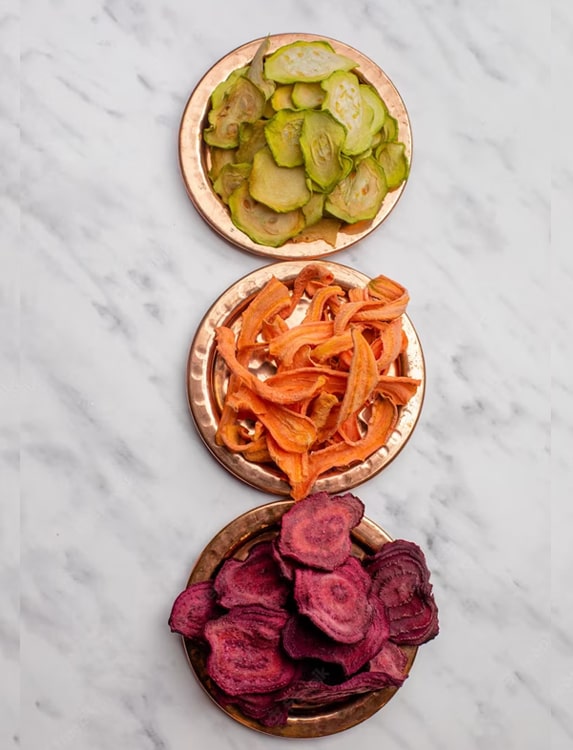 • Air drying: Vegetables are sliced or chopped and then exposed to warm air or low heat to gradually remove moisture.